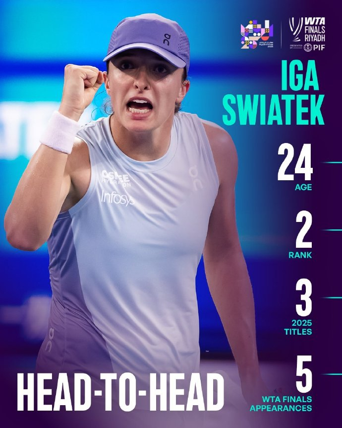 北京时间11月2日凌晨,2025利雅得WTA年终总决赛女单小组赛首轮,斯瓦泰克2-0完胜凯斯,莱巴金娜2-0完胜阿尼西莫娃。