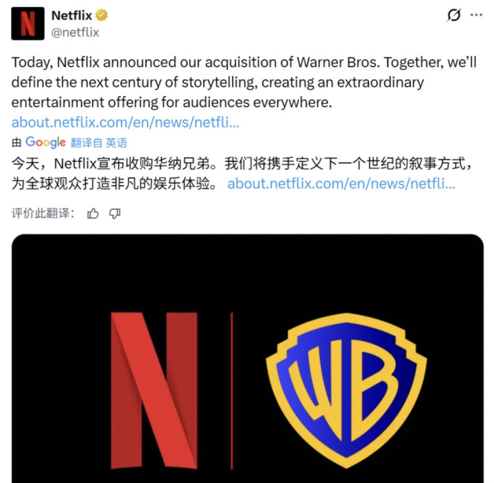 这不免让鱼叔想到最近网飞收购华纳的新闻。
